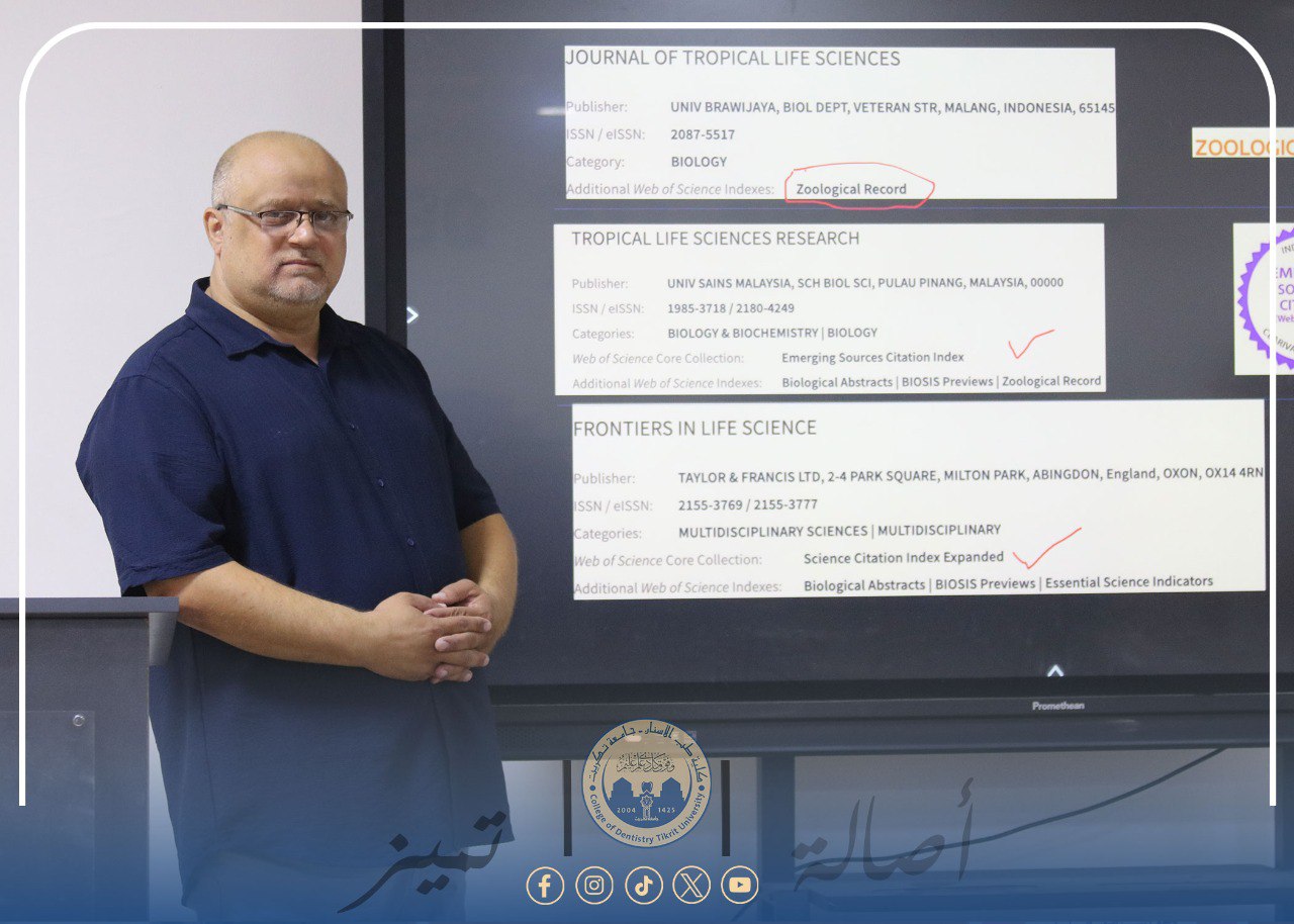 أُقيمت الندوة على مدى يومين 13–14 تشرين الأول 2025 في قاعة الدراسات رقم (4) بكلية طب الأسنان، بمشاركة مجموعة من تدريسيي الكلية وباحثيها.