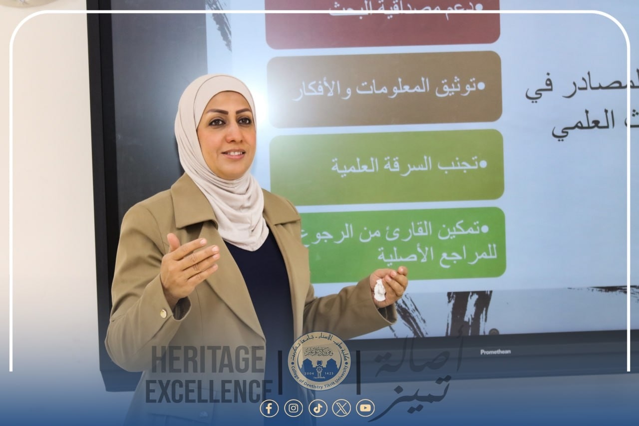 وتهدف الدورة إلى تطوير مهارات المشاركين في إدارة وتنظيم المصادر العلمية وإدراج الاستشهادات التوثيقية في البحوث الأكاديمية وفق الأساليب العالمية المعتمدة، فضلاً عن التدريب العملي على إنشاء المكتبات الإلكترونية الشخصية، وتنظيم المراجع، وربطها ببرامج معالجة النصوص بما يسهم في تسهيل إعداد البحوث والرسائل الجامعية ورفع جودة النتاج العلمي.