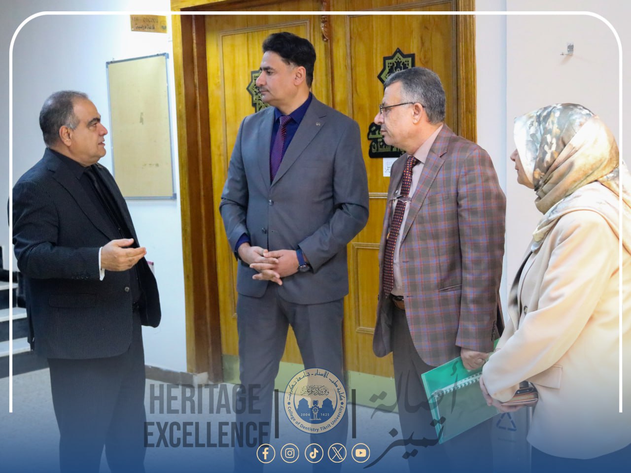 وجاءت الزيارة برفقة وفد من رئاسة الجامعة ضم كلّاً من مدير قسم التخطيط، ومدير قسم شؤون الطلبة، ومدير قسم البعثات والعلاقات العامة في جامعة تكريت، حيث كان في استقبالهم عميد كلية طب الأسنان الأستاذ المساعد الدكتور محمد رحيل علي وعدد من تدريسيي الكلية.