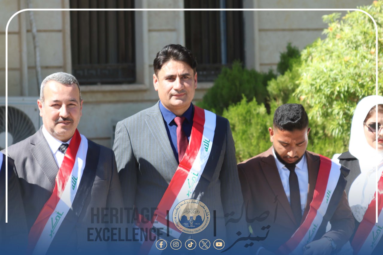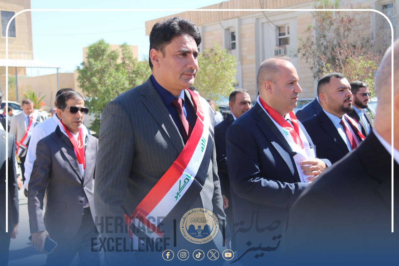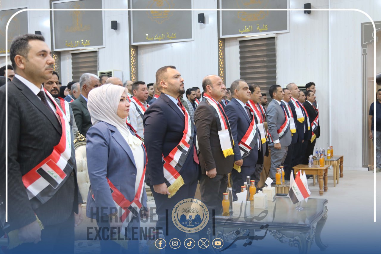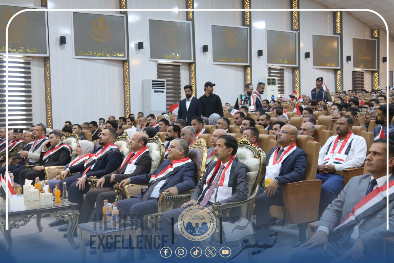 شاركت عمادة كلية طب الأسنان / جامعة تكريت، متمثلةً بالسيد الأستاذ المساعد الدكتور محمد رحيل علي عميد الكلية، وبمشاركة مجموعة من تدريسيي الكلية وطلبتها من مختلف المراحل الدراسية، في الاحتفالية المركزية التي أقامتها جامعة تكريت بمناسبة اليوم الوطني العراقي، برعاية الأستاذ الدكتور وعد محمود رؤوف رئيس الجامعة، وتحت شعار "اليوم الوطني هوية وانتماء"، وذلك على قاعة الخوارزمي في رئاسة الجامعة.